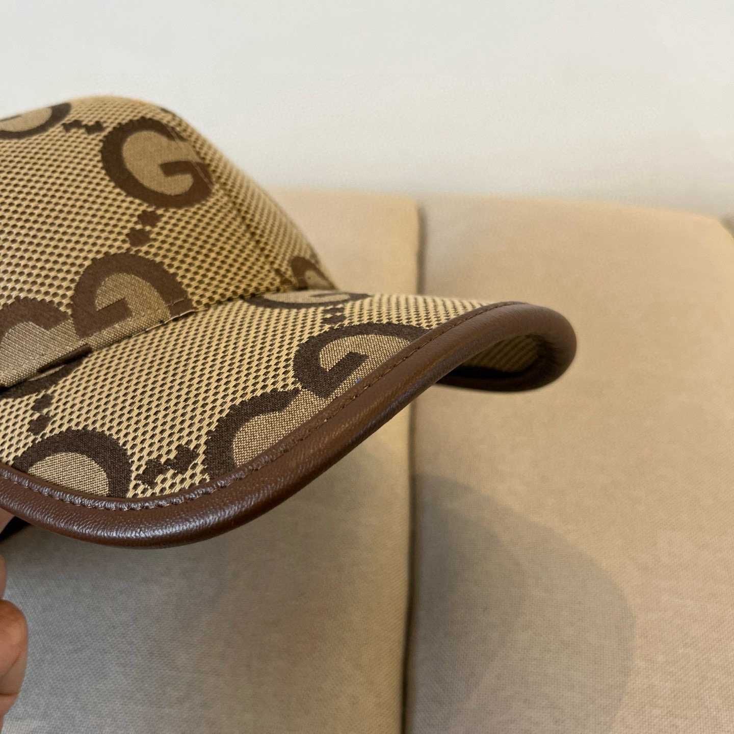 Gucci Brown Beige Canvas Monogram Cap Premium Cotton Blend