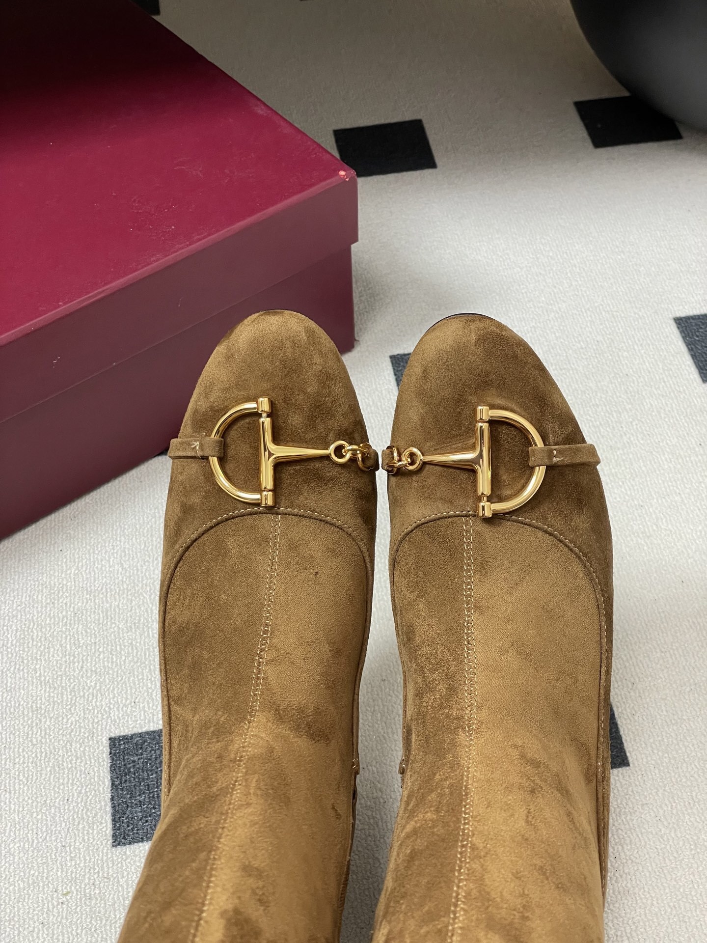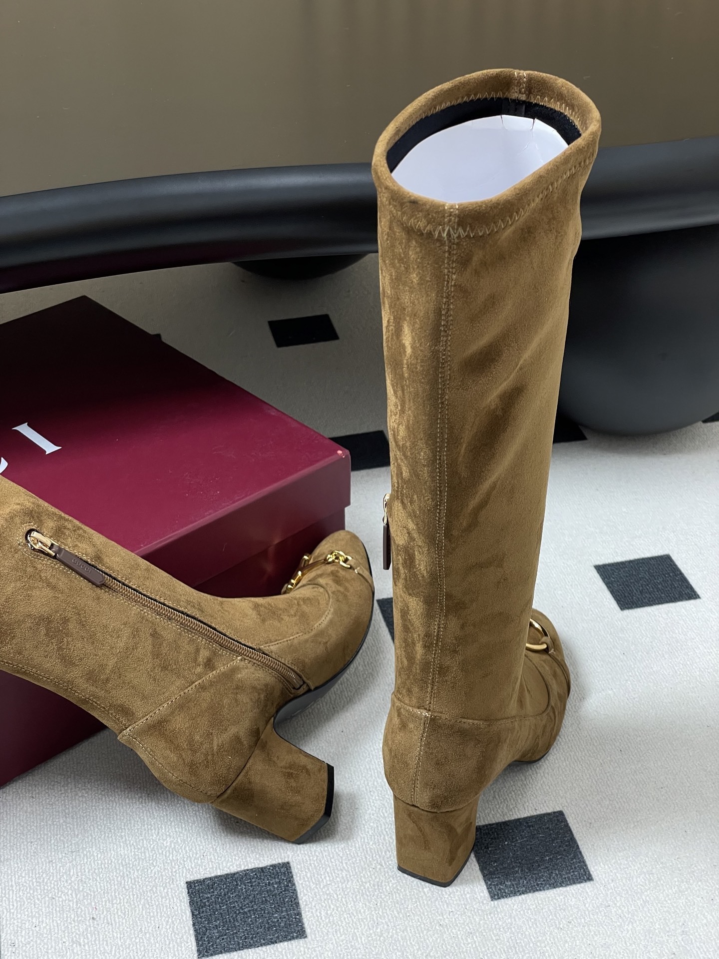 Gucci Women's Brown Suede Horsebit Knee-High Block Heel Boots